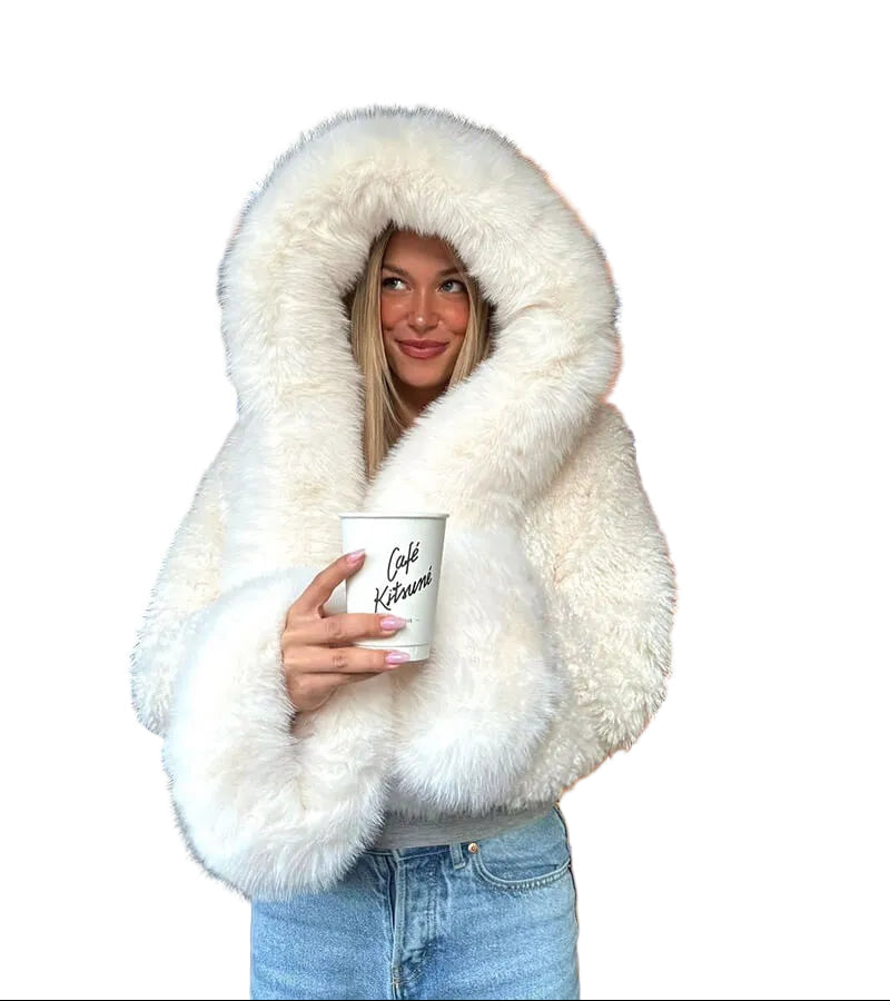 Women’s Oversized Hooded Fur Coat with Open Front